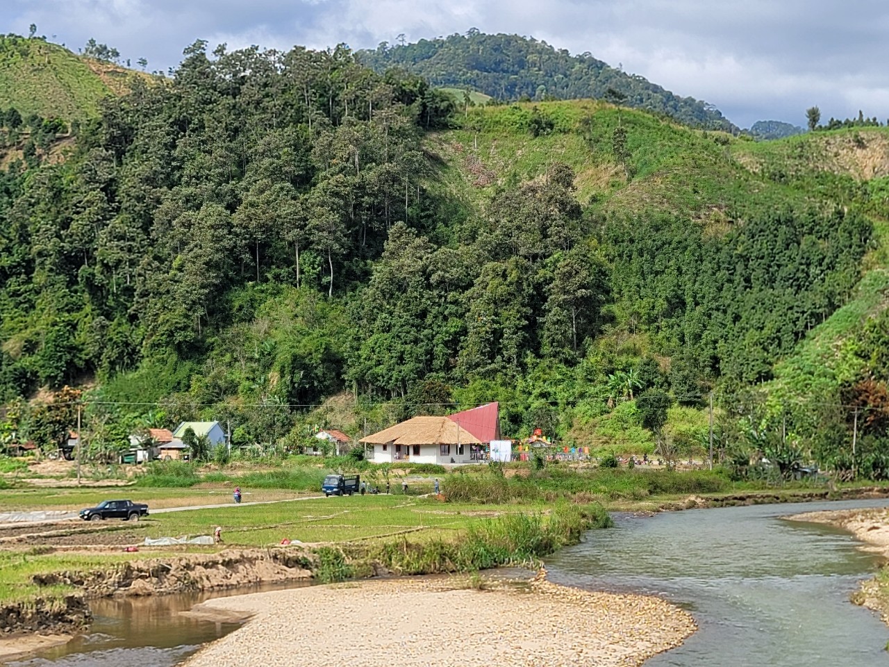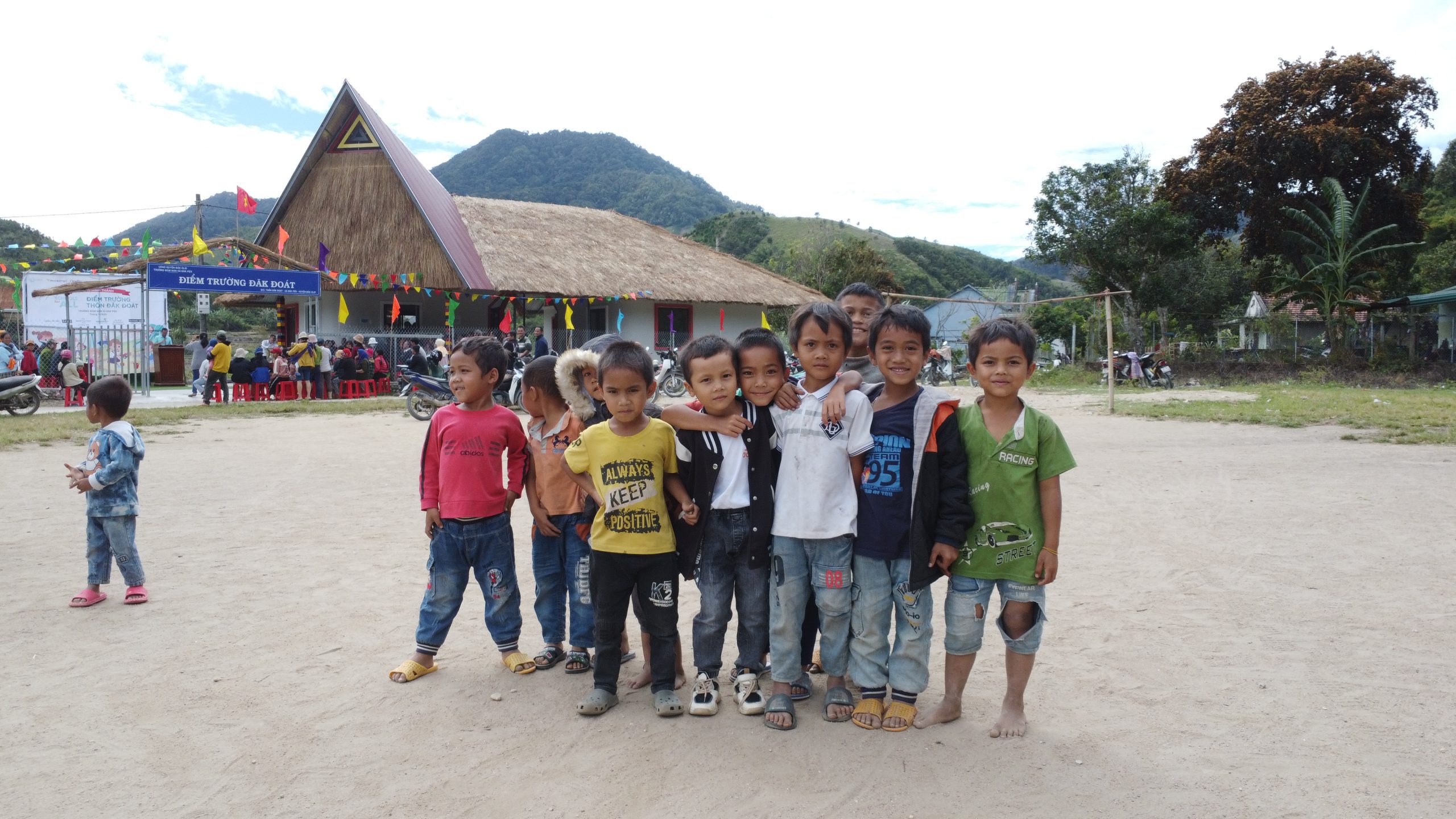 Returning to Dak Glei, the Central Highlands area with its majestic mountain slopes and drifting clouds, we are thrilled to share the joy of inaugurating a new school. The Dak Doat Kindergarten project in Dak Pek commune reached completion in November 2023, marking the culmination of approximately four months of dedicated progress. Boasting two classrooms, two separate restrooms, and a spacious playground, the school spans a total area of around 1000m2.